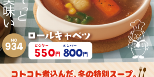 🥣❄️期間限定メニュー❄️🥣 心までほっと温まる冬の特別スープ 『ロールキャベツ』 チキンとポークの旨みが溶け込んだ 洋風スープでじっくり煮込んだ ロールキャベツは、寒い季節にぴったりの優しい味わい…✨ にんじんの甘み、ソーセージのコク、 スープの香ばしさが重なり合う満足の一杯です🍽 ビジター:550円 メンバー:800円 【販売期間:2 …
